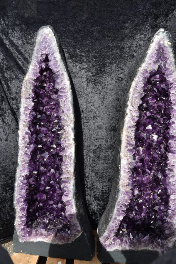 Großes, perfektes Amethyst-Drusenpaar mit großen, dunklen Spitzen!