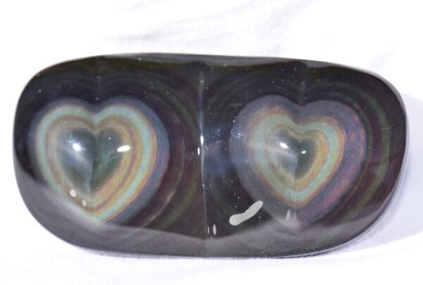 Regenbogen Obsidian mit zwei Augen in Herzform
